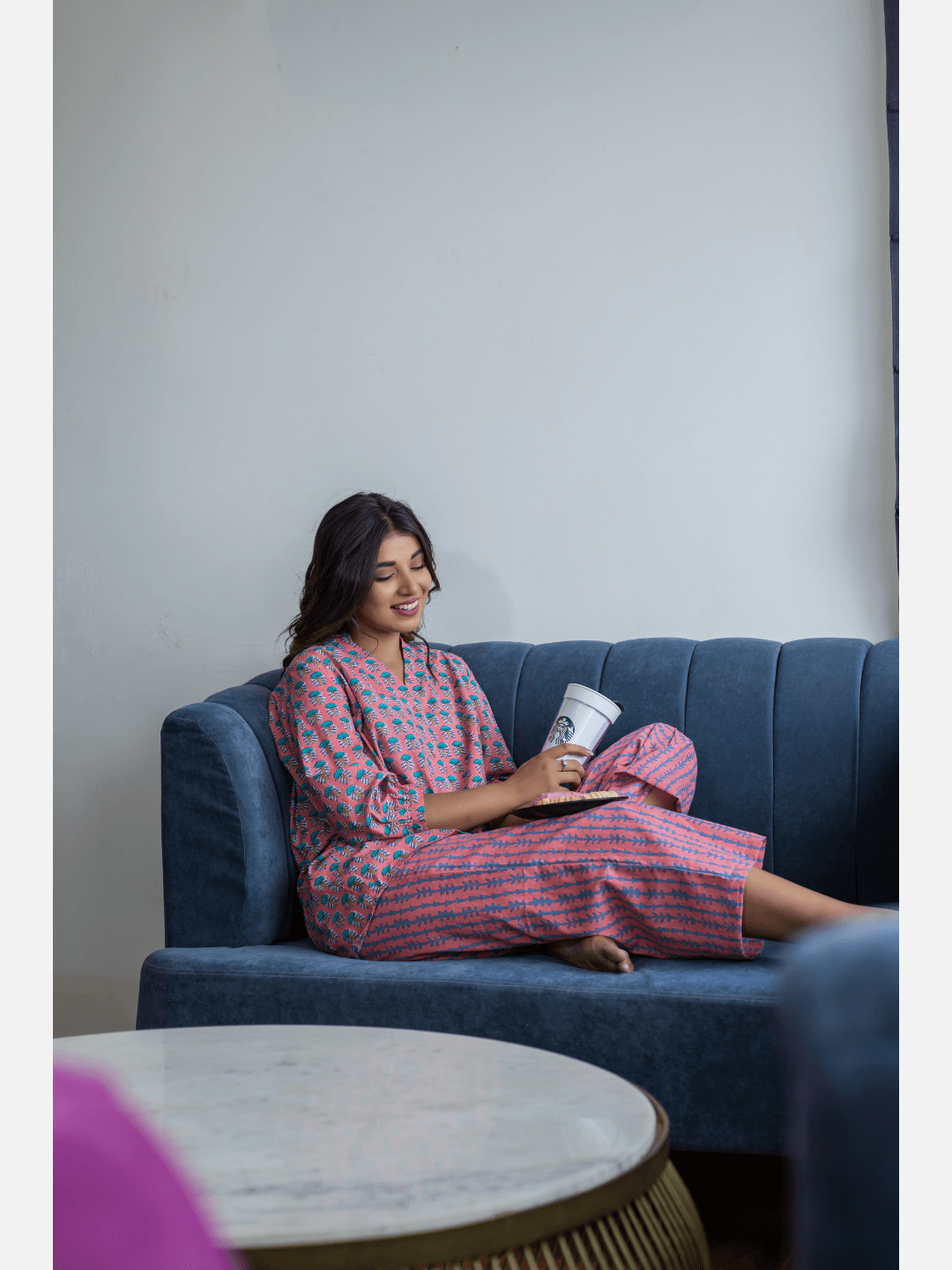 Indigo/Beige Pure Cotton Lounge Wear