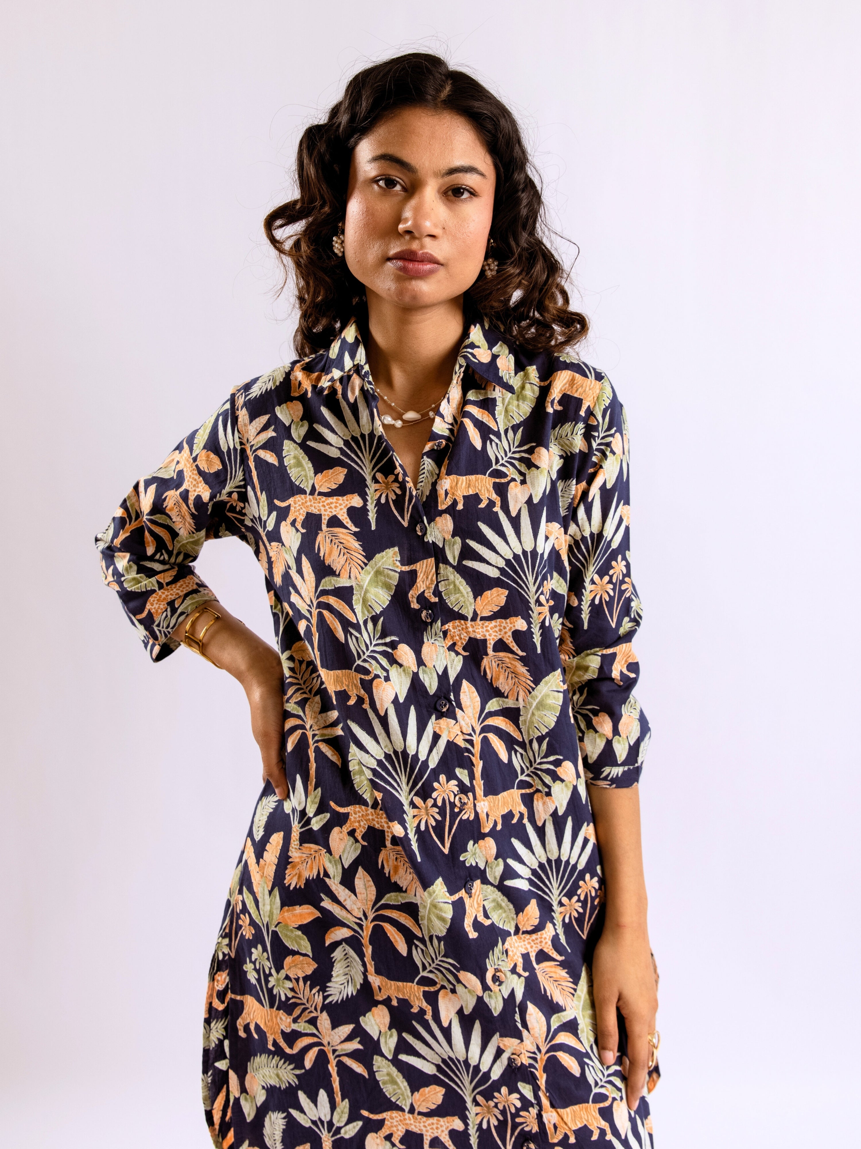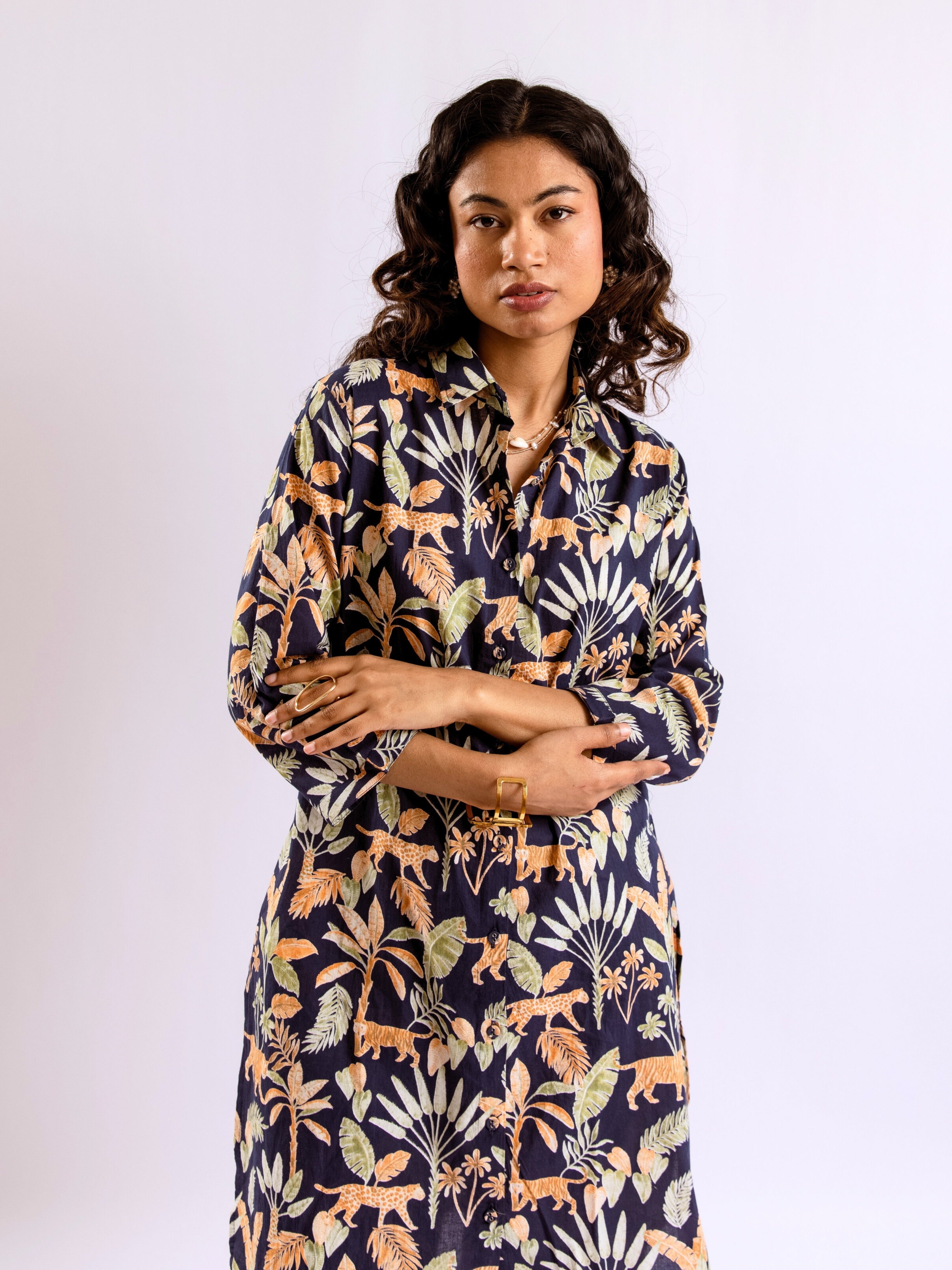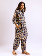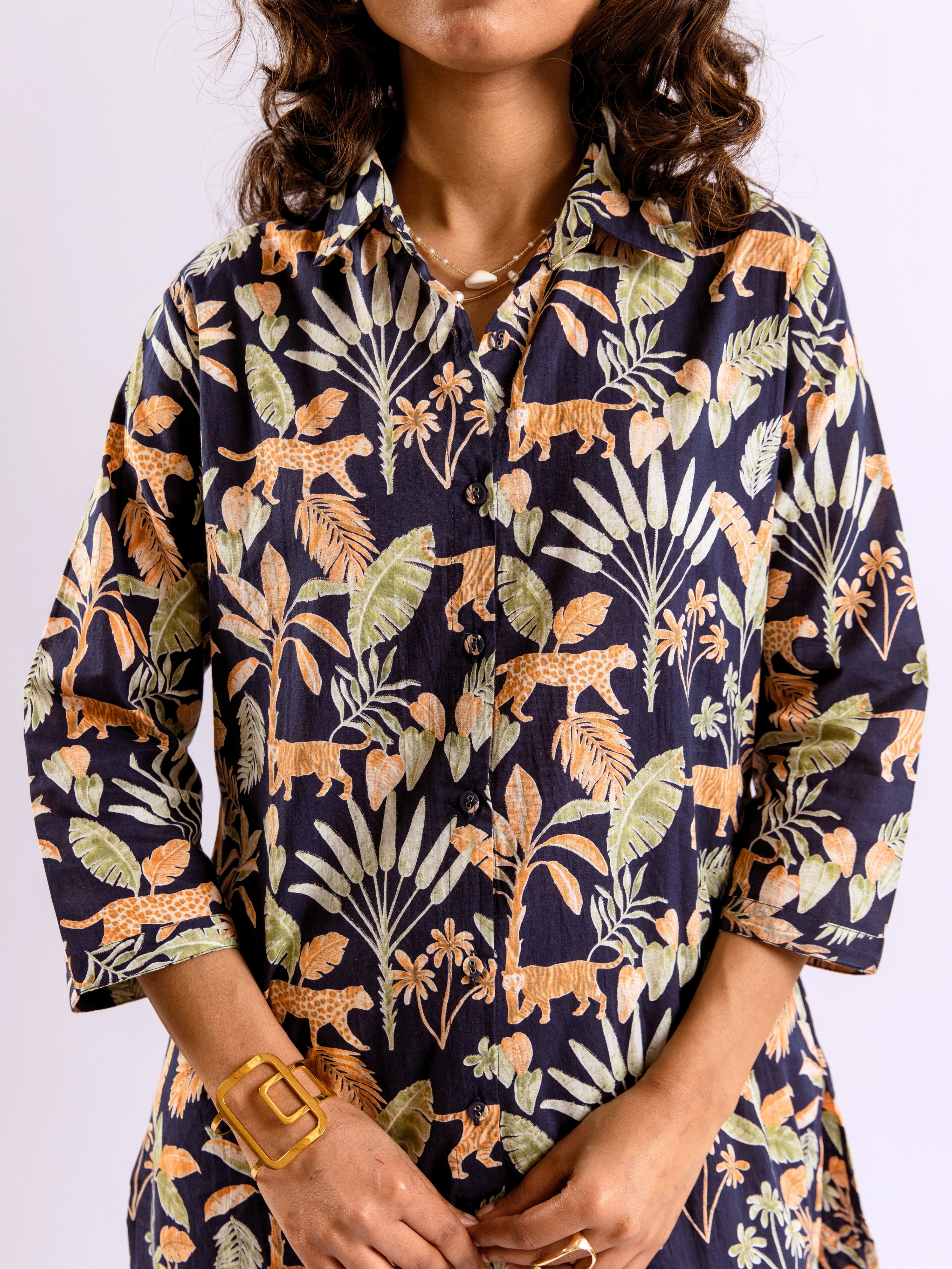 Tropical Cobalt Tiger Stripes Long Shirt & Patiala Co-Ord Set