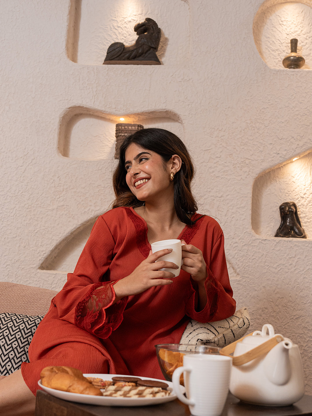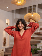 The company has done wonderful work by bringing nicely curated designs for night suits. The cost is also reasonable - but the quality of cotton can be increased.The cloth becomes somewhat transparent in sunlight/bright lights. The OVERALL DESIGNS and COMBINATION OF UPPER and LOWER PART OF DRESS is also great, therefore I hope, that company will take this feedback positively.