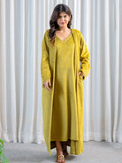 Snuggle into comfort with this dreamy olive woollen set! Featuring a luxuriously soft maxi paired with a matching shrug, you'll stay toasty and chic. Perfect for lazy days or evening strolls—your new go-to combo for cozy-glam vibes!
