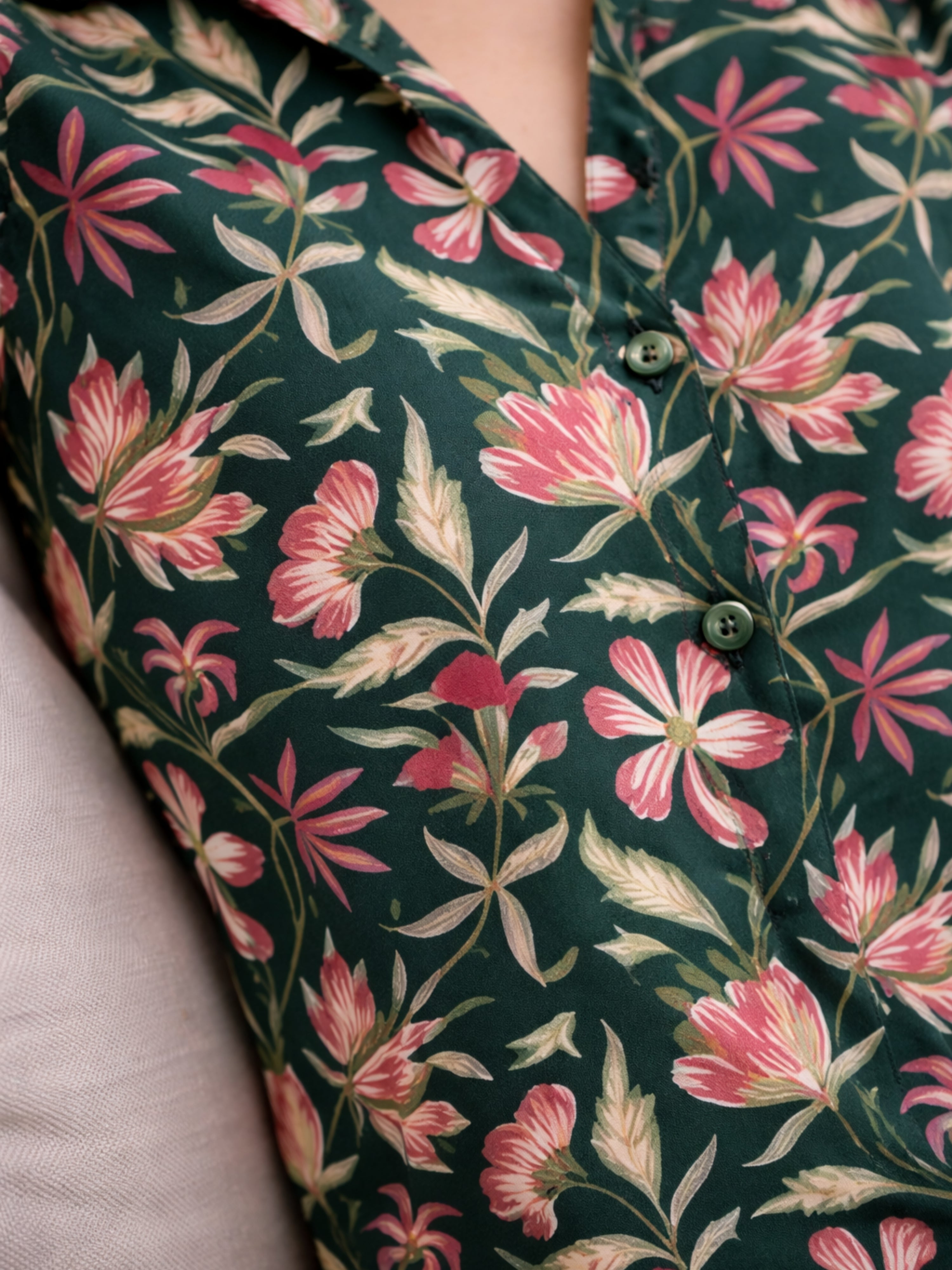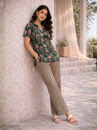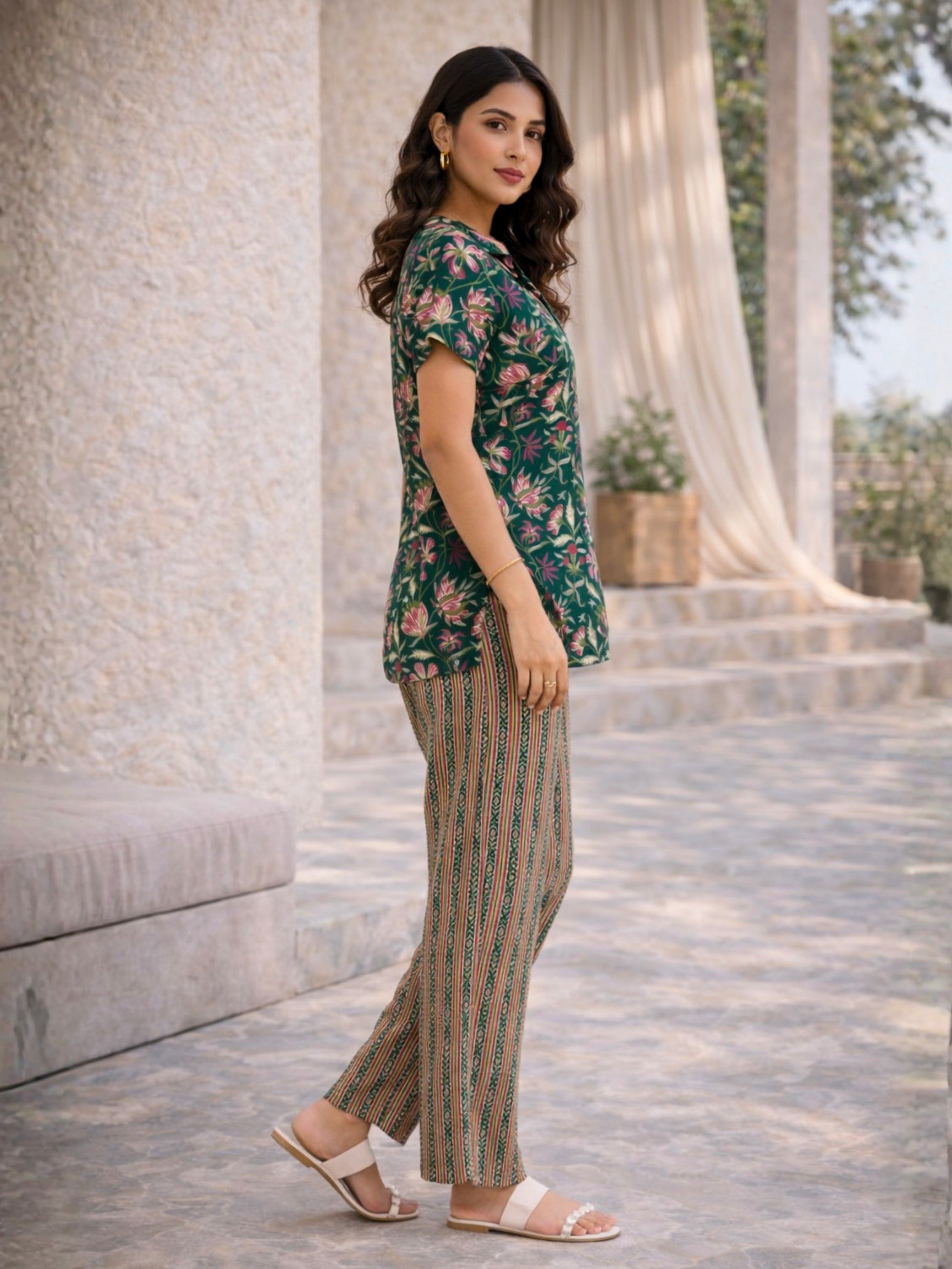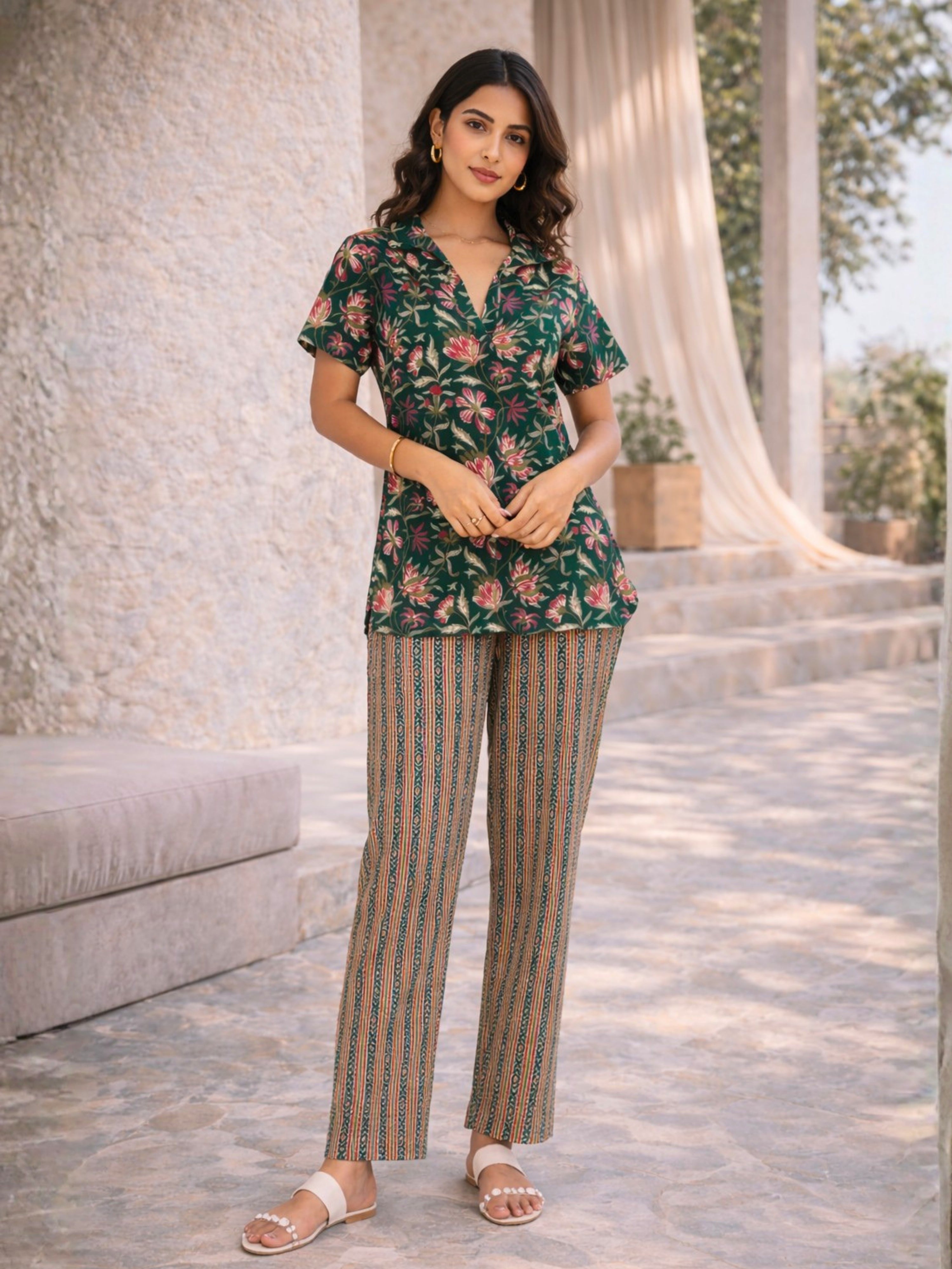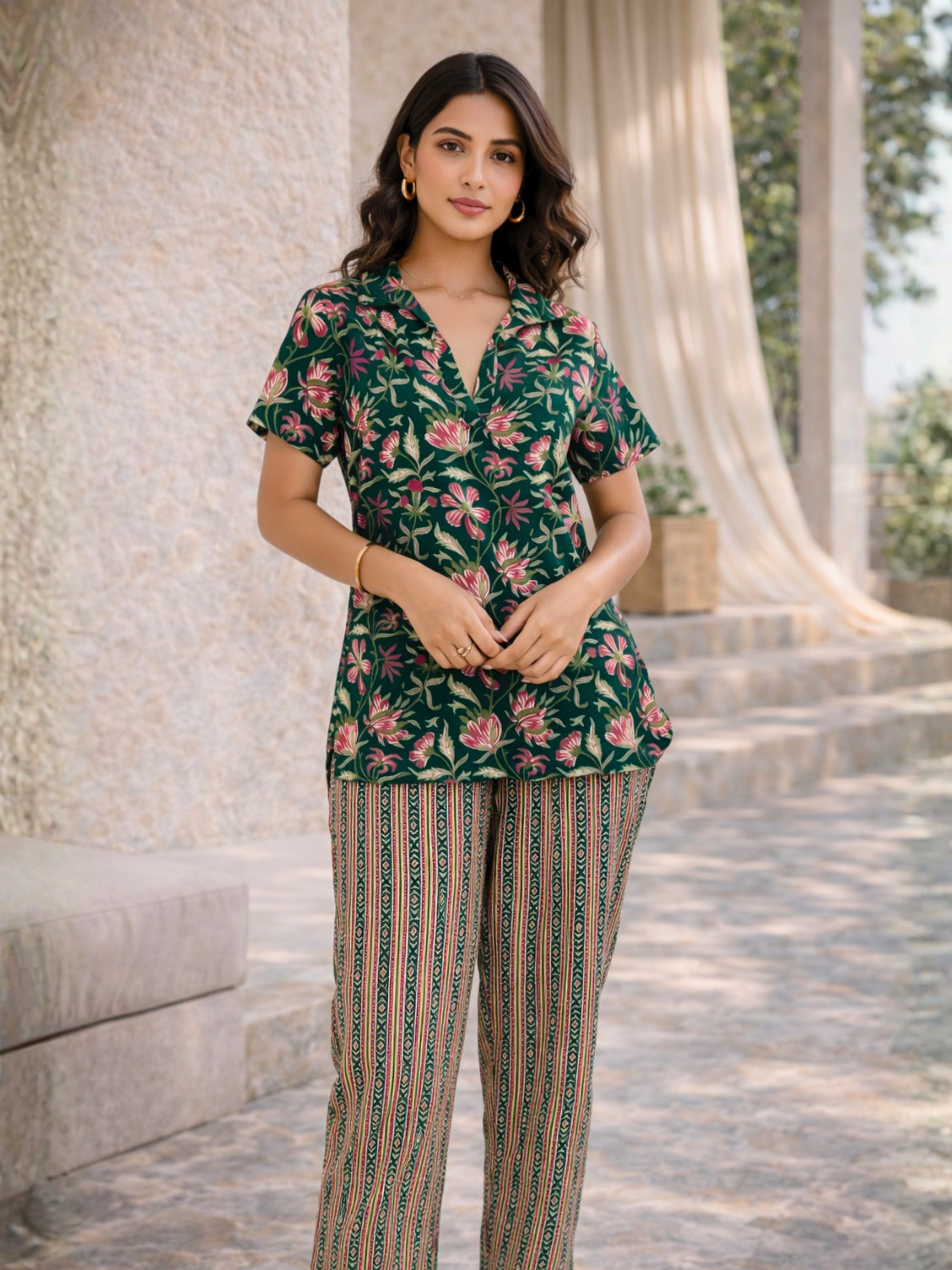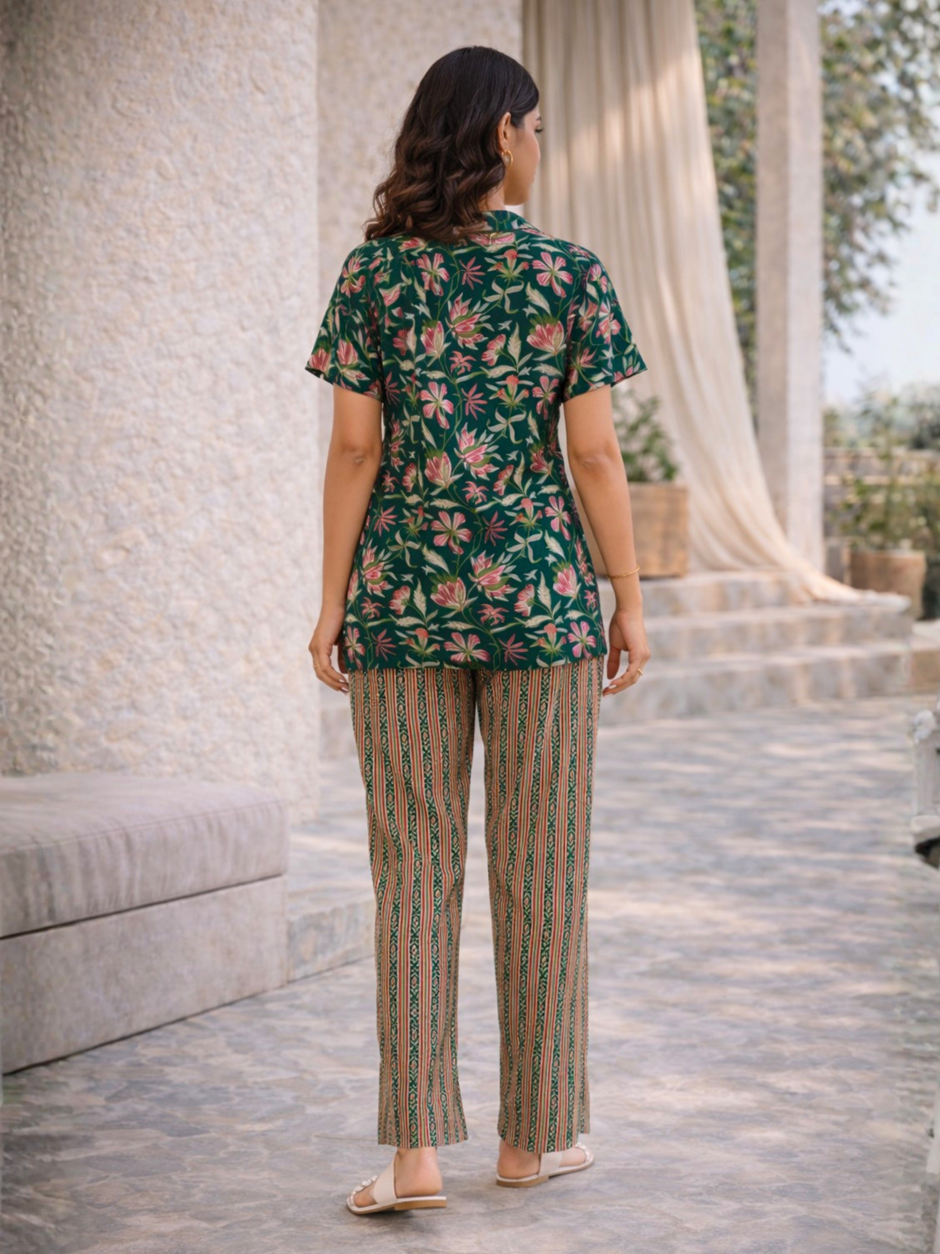 Green Delight Pure Cotton Short Sleeves Collar Co-Ord Set