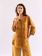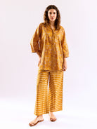 Mustard Flora Flick Pure Cotton Back Pleated Co-ord set