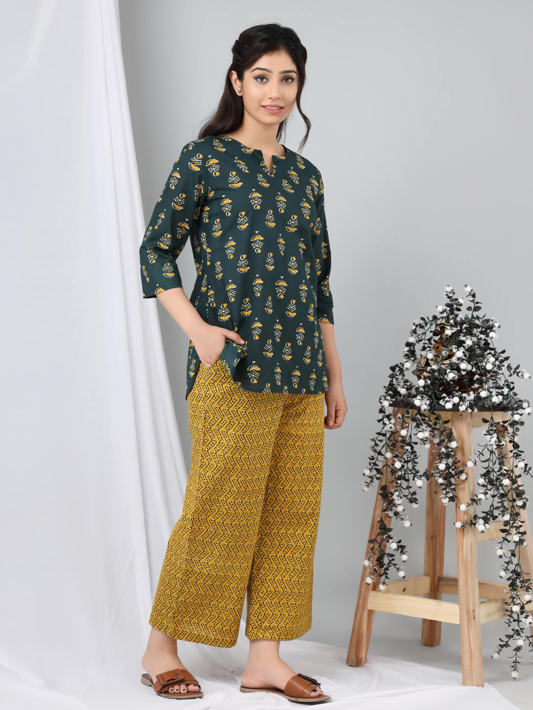 The company has done wonderful work by bringing nicely curated designs for night suits. The cost is also reasonable - but the quality of cotton can be increased.The cloth becomes somewhat transparent in sunlight/bright lights. The OVERALL DESIGNS and COMBINATION OF UPPER and LOWER PART OF DRESS is also great, therefore I hope, that company will take this feedback positively.
