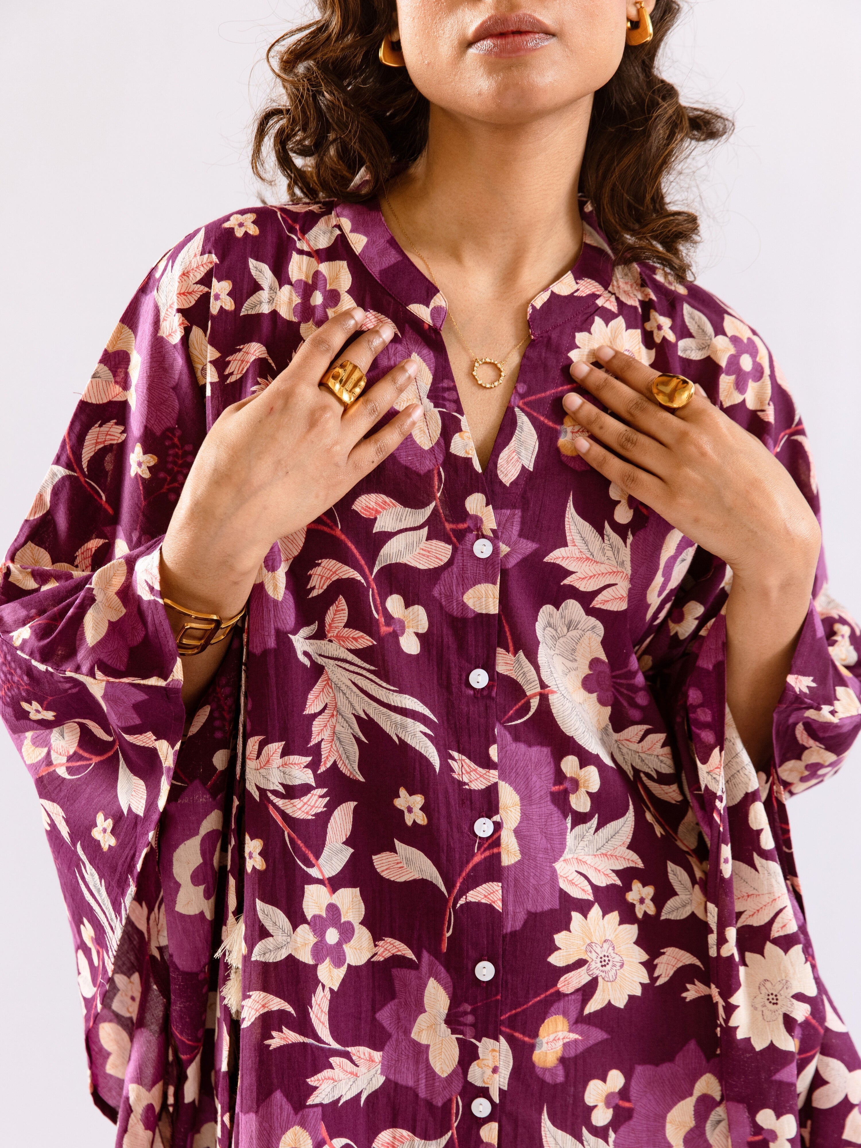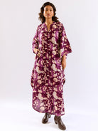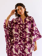 Purple Boho Sage Pure Cotton V neck Kaftan Dress