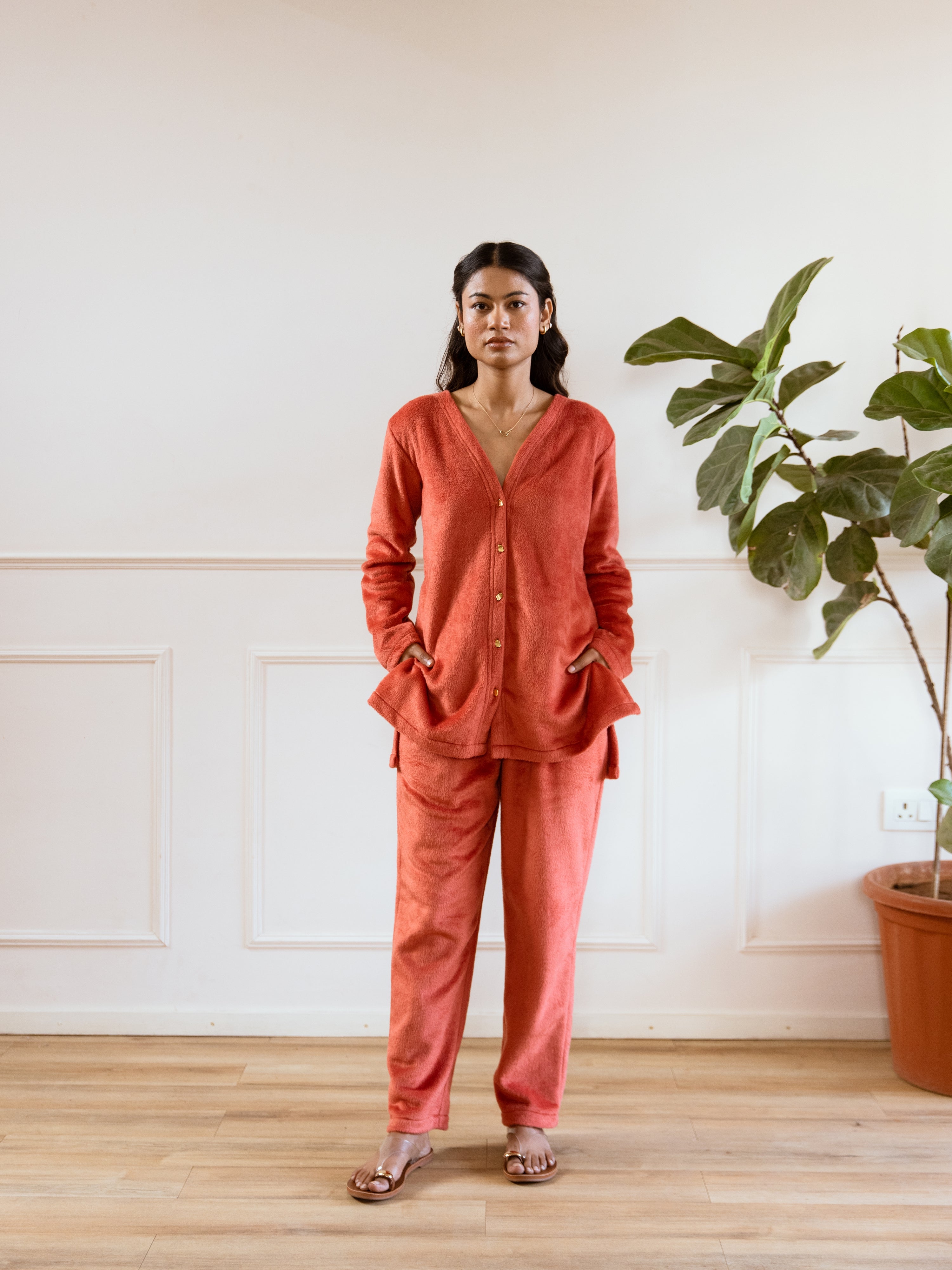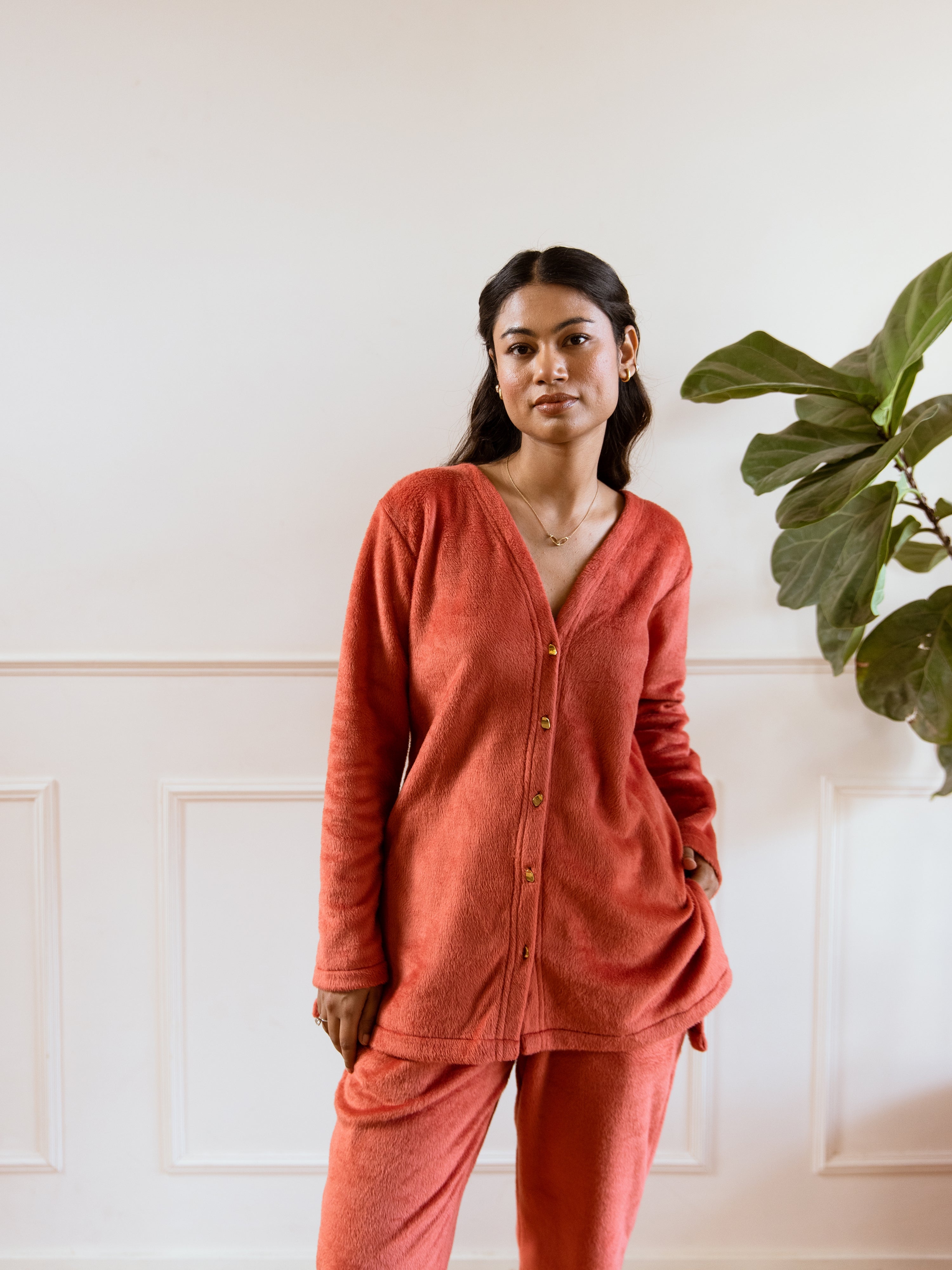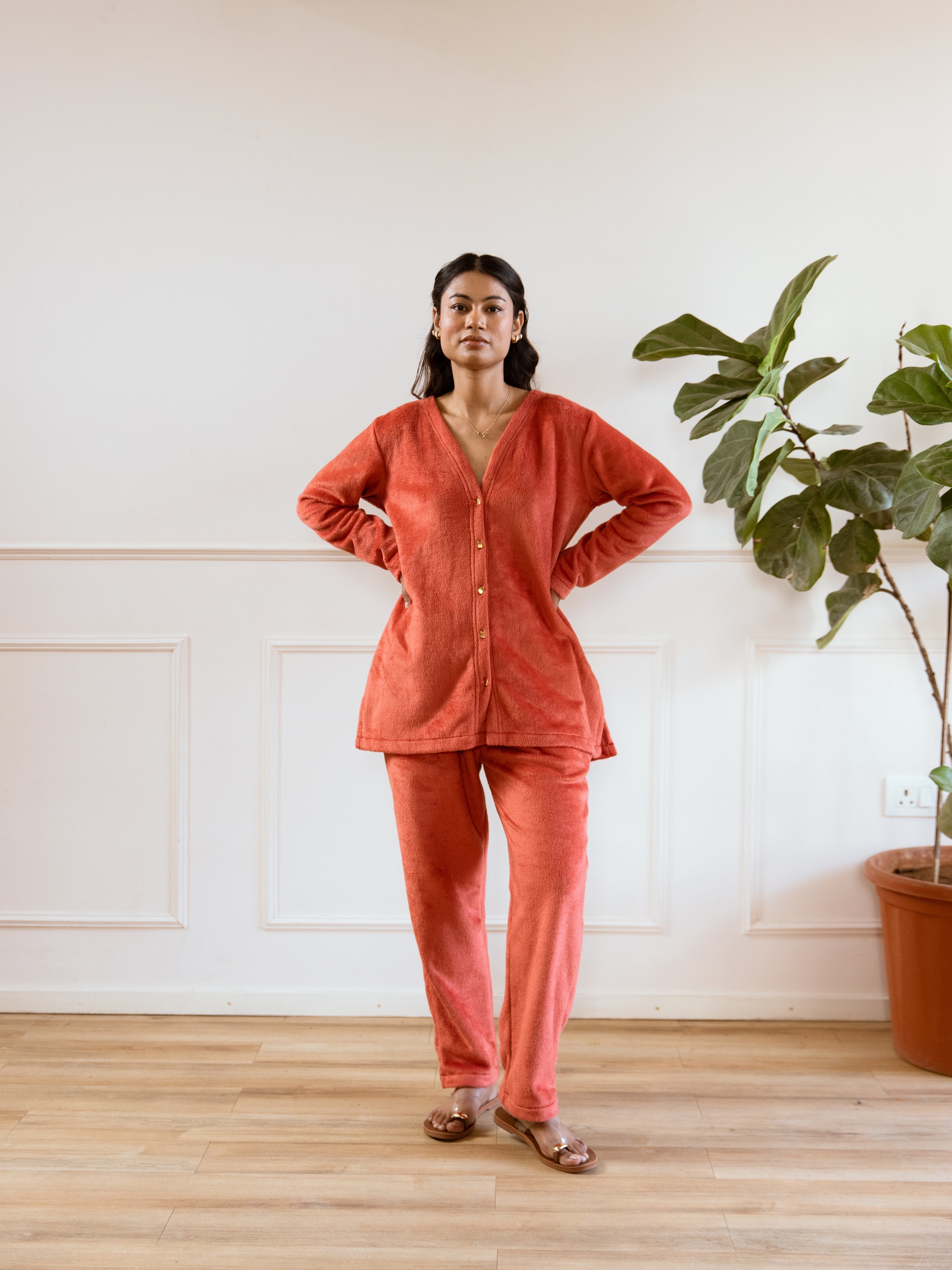 The perfect set for staying cozy all winter long! Our Rust Super Soft Woollen Cardigan Set is made of premium wool for ultimate softness and warmth. This versatile set can be dressed up or down and is sure to keep you stylish and comfortable. Don't sacrifice comfort for style- have both with our cardigan set!