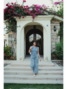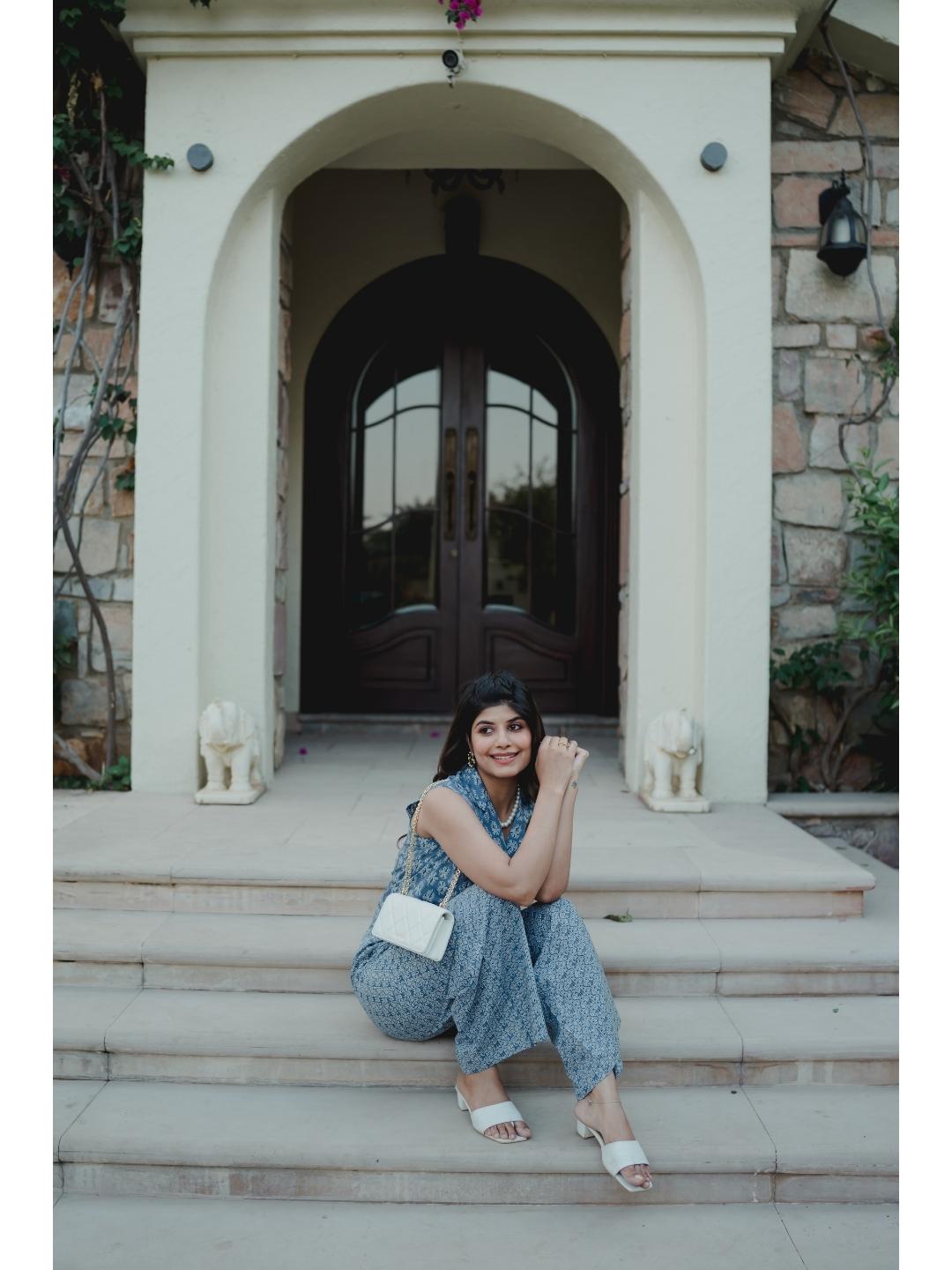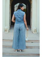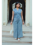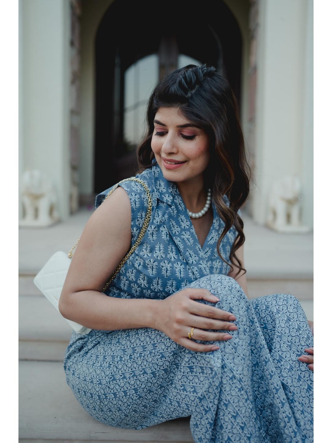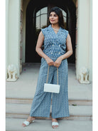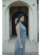 Blue Jaal Pure Cotton Tieup Square Neck Night Maxi