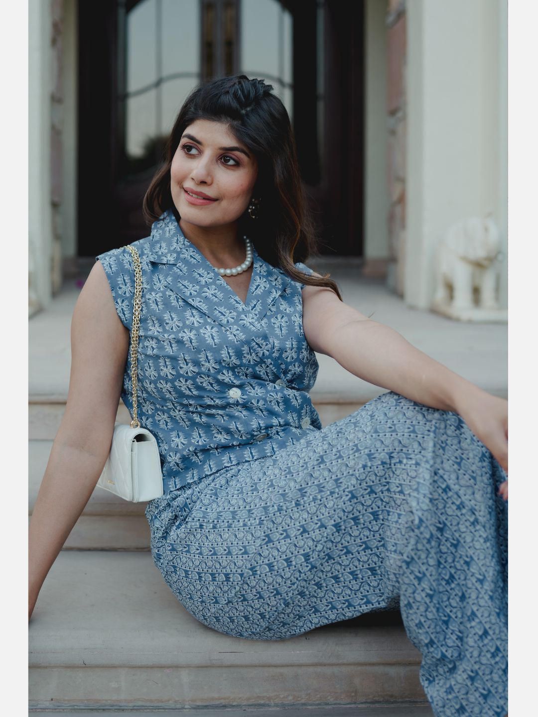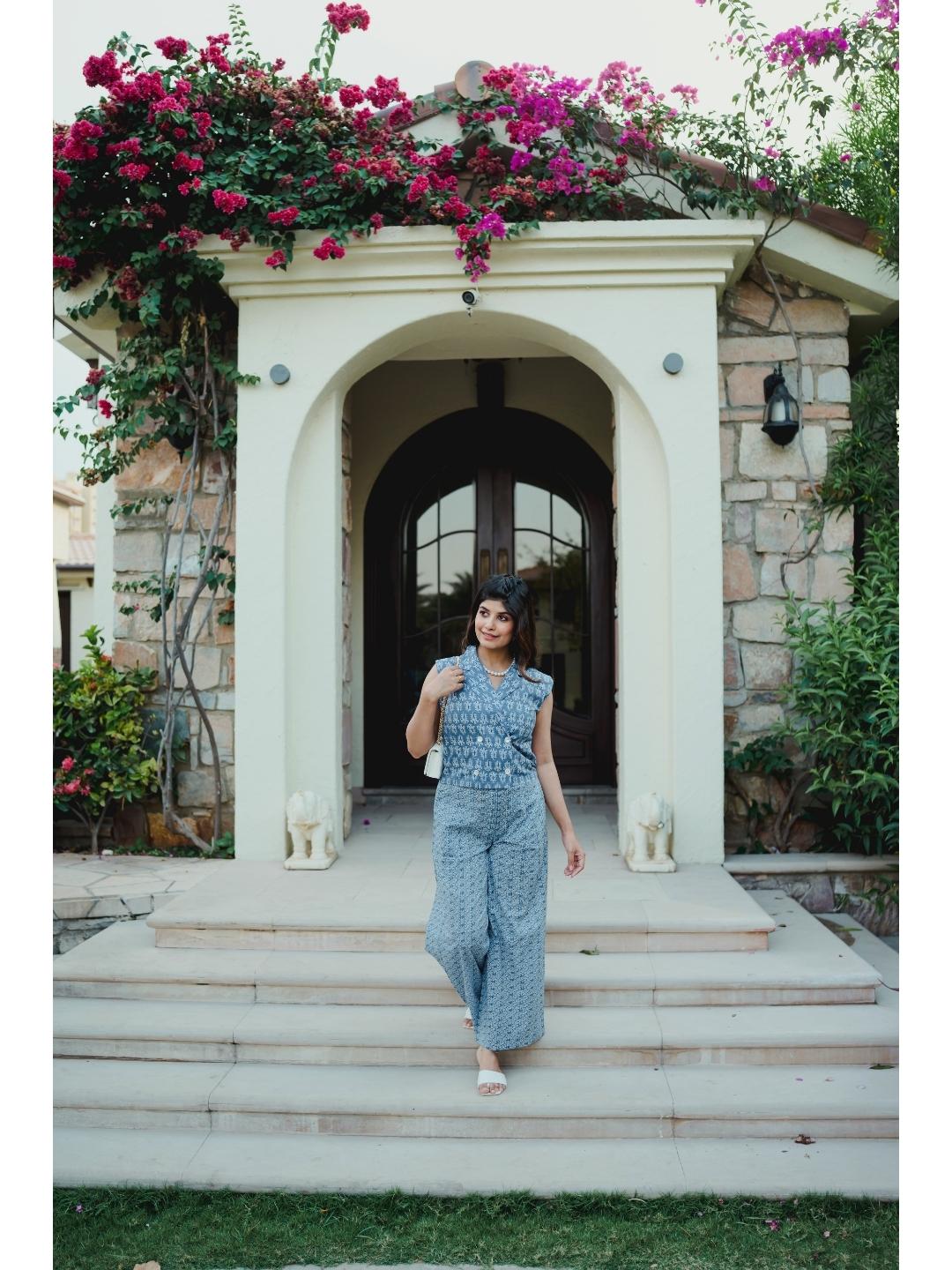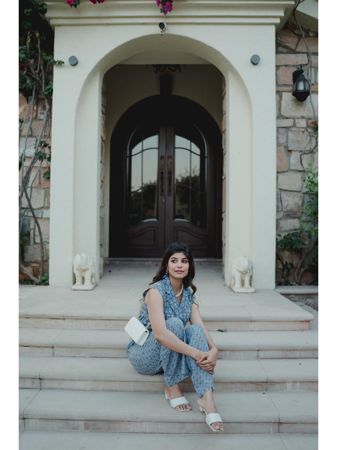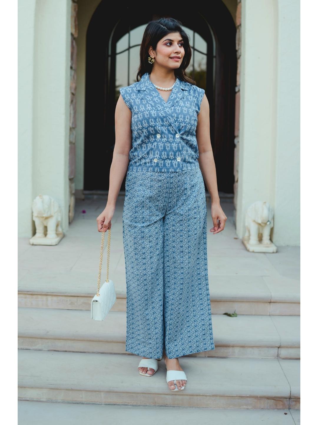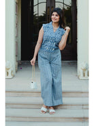 Light Blue Soft Crepe Sleeveless Top and Ruffle Shorts Co-Ord Set
