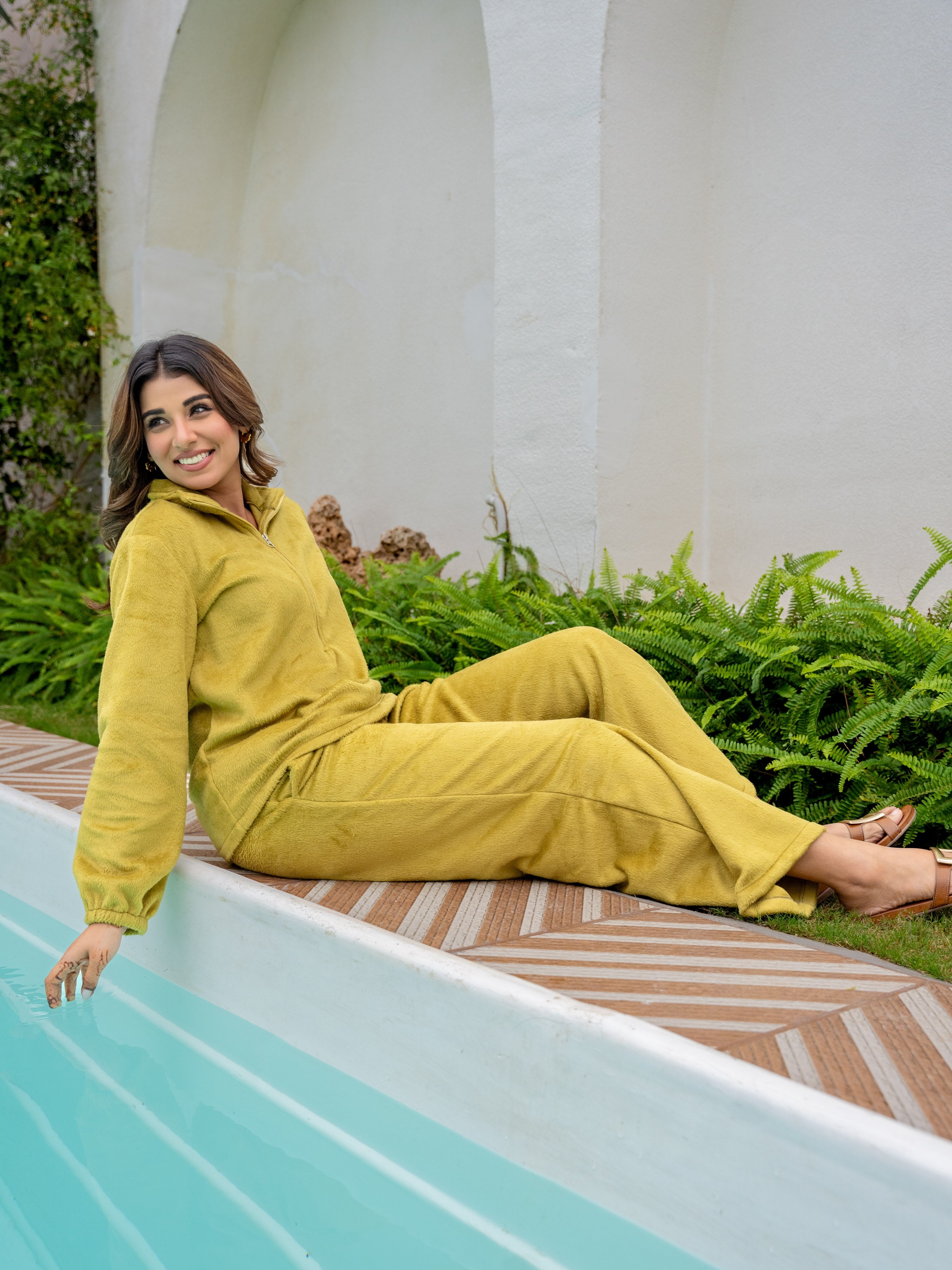 Lime Green Mist Bloom Pure Cotton v neck Night Maxi